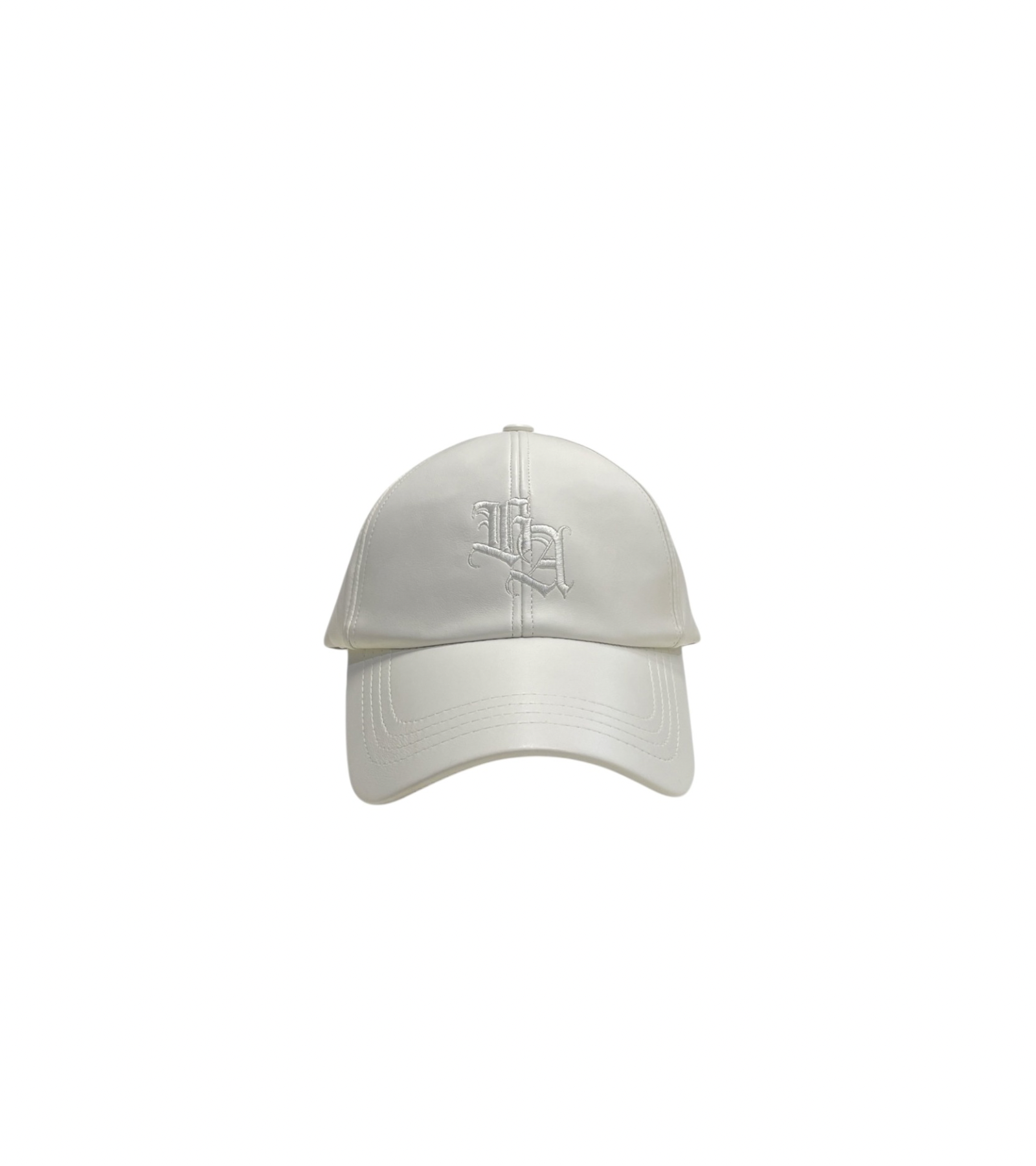 BA刺繍のロゴが印象的なフェイクレザーキャップ。
